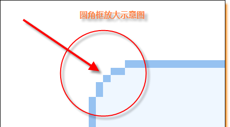 純CSS方式實現(xiàn)圓角框的原理在網(wǎng)絡上已經(jīng)有很多人詳細解說了,下面這個示意圖是我將其中的一個圓角進行放大后的效果。
